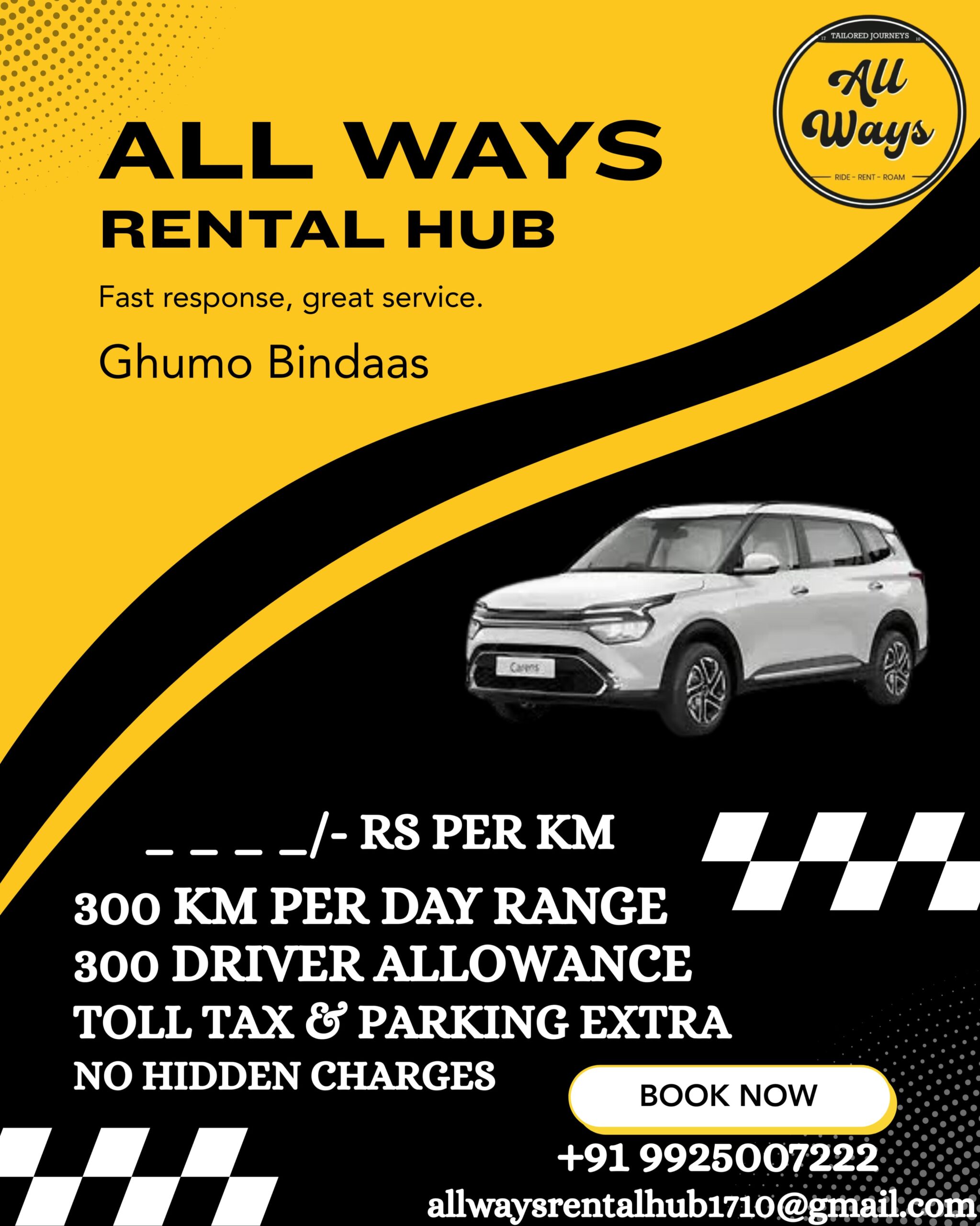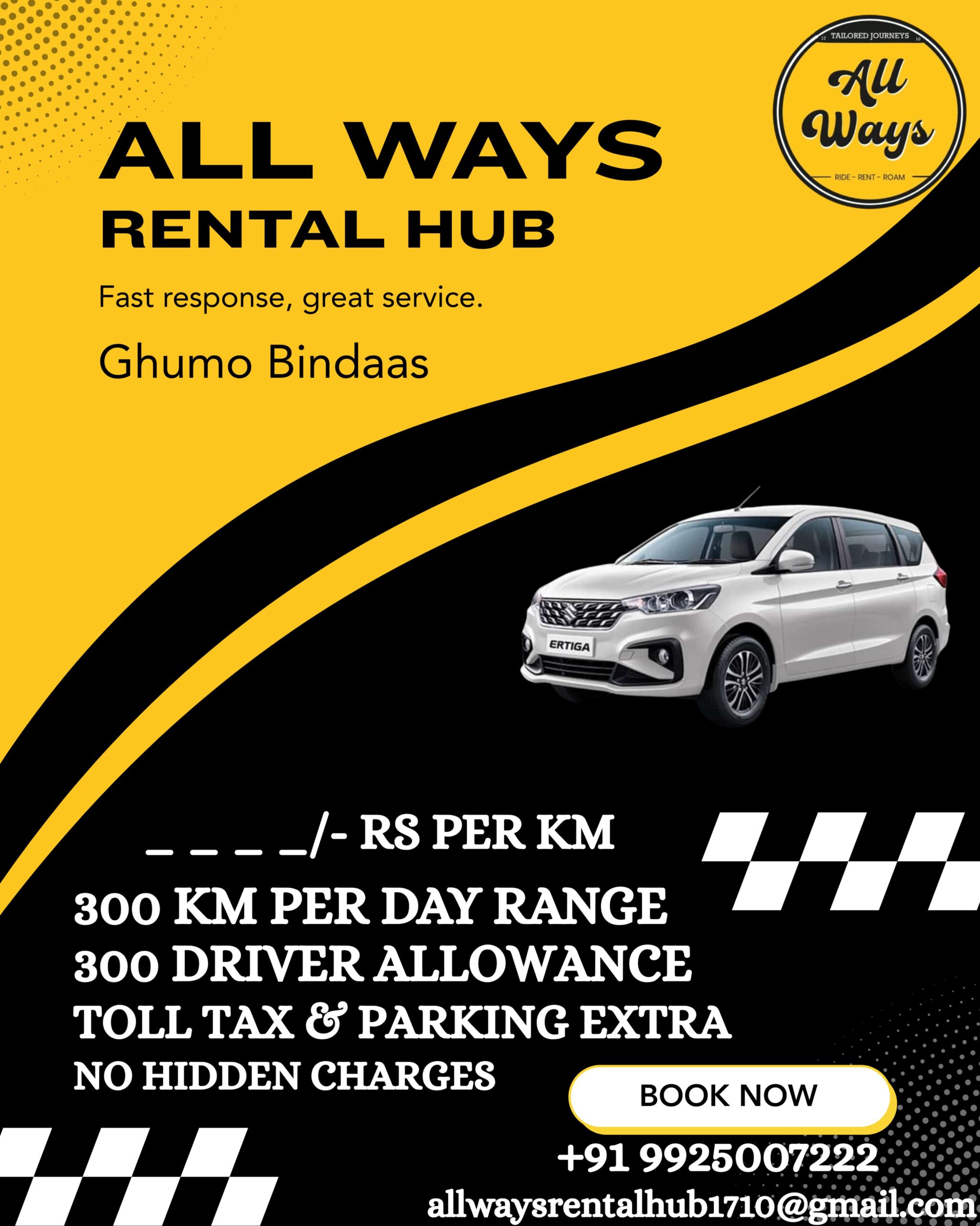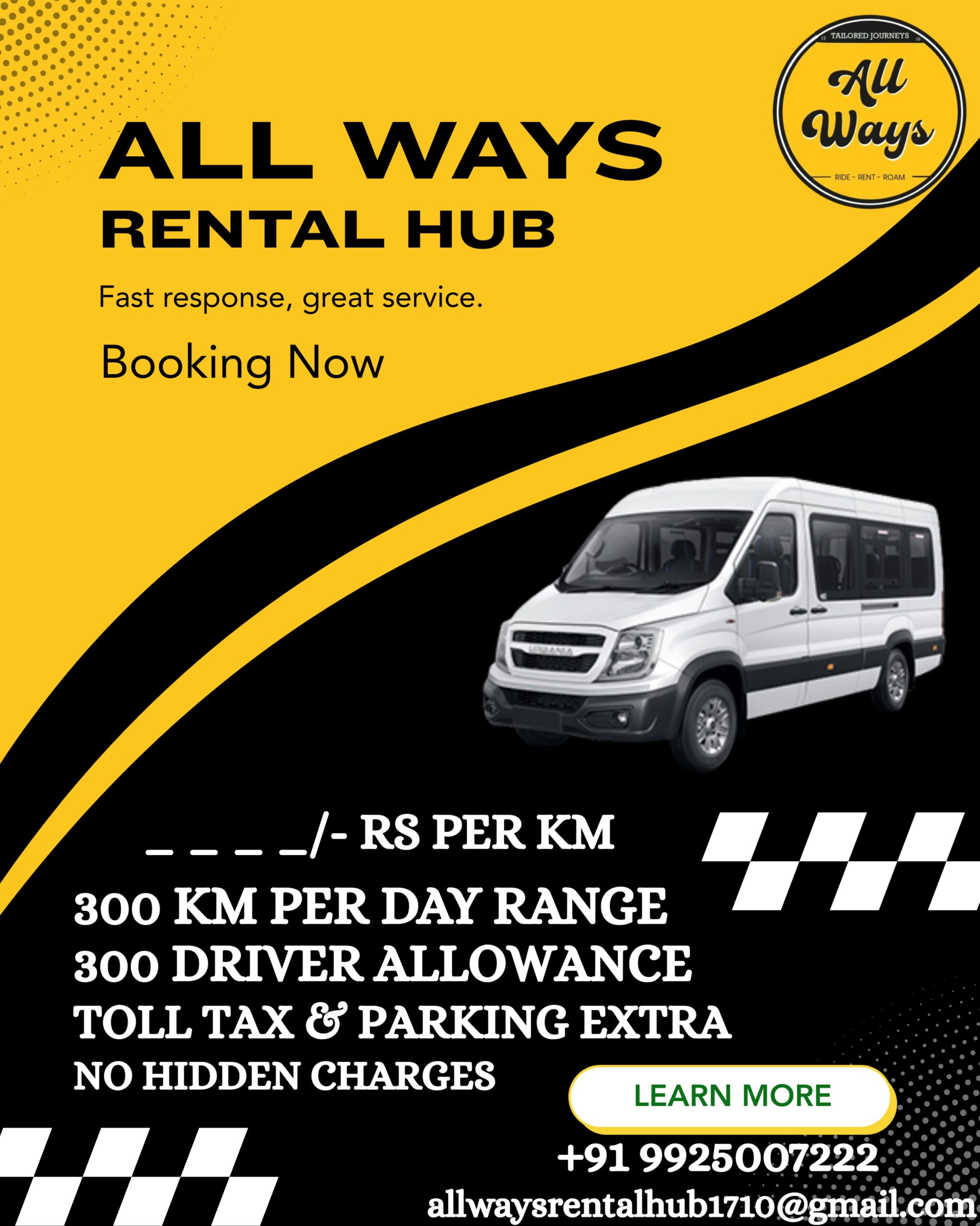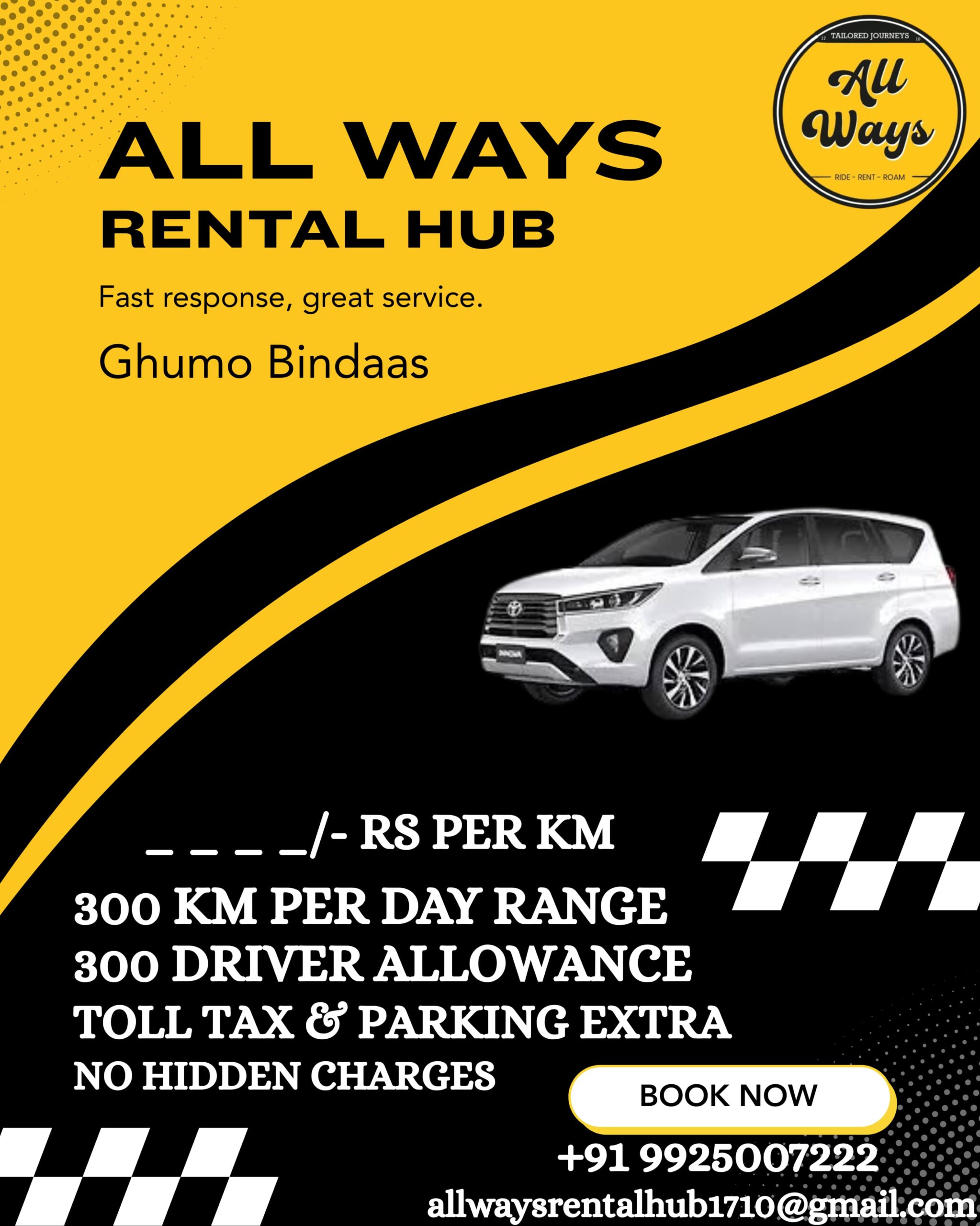 One-way, round trip, airport pickup & drop, corporate booking, marriage function and local sightseeing across Gujarat, Rajasthan, Maharashtra, Madhya Pradesh & all India routes.